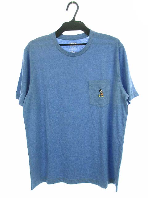 ユニクロ Uniqlo ディズニー トップス Tシャツ 半袖 ミッキー 刺繍 ポケット コットン ブルー Xl メンズ 069 ベクトルパーク