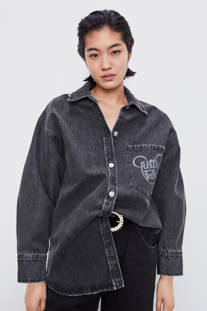 Zara秋新作ミッキー プルートデニムシャツ Border Gara